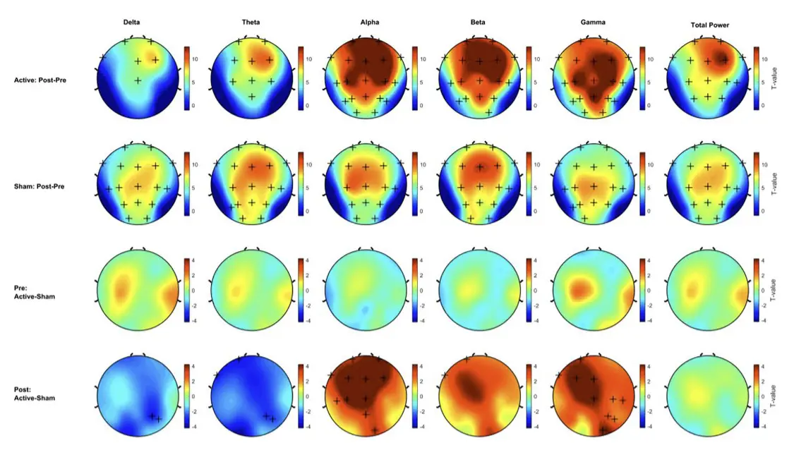 Figure 4. Influence of tPBM on resting-state electroencephalography.